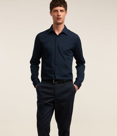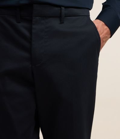 Ref: Calça masculina slim em alfaiataria, confeccionada em material mais sustentável. Cós com passantes, fechamento tradicional, bolsos e possui efeito acetinado.