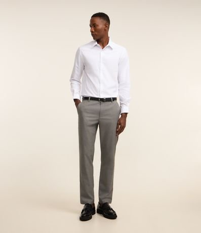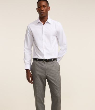 Ref: Calça masculina confeccionada em viscose mais sustentável, no modelo slim. Peça alfaiatada, possui cós com passante, fechamento tradicional, bolsos e estampa xadrez em fio tinto.