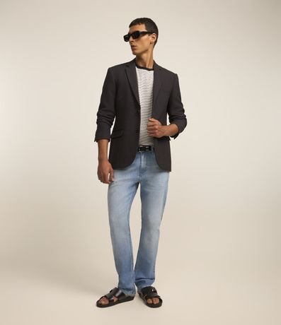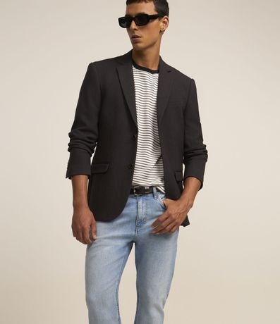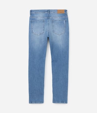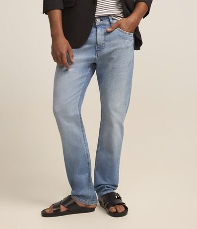 Ref: Calça jeans masculina, modelo slim básica, com lavagem clara e pequenos puído nos bolsos.