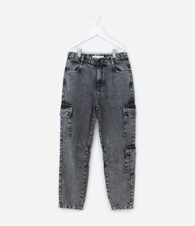 Calça Slouchy Infantil em Jeans com Bolso Cargo - Tam 5 a 14 Anos