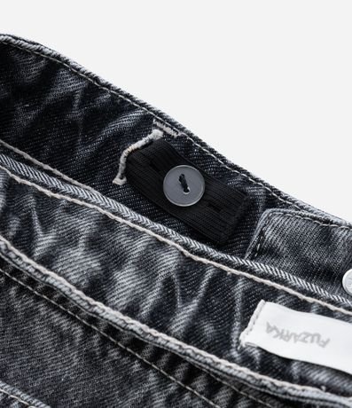 Calça infantil confeccionada em jeans mais sustentável através de boas práticas ambientais, no modelo slouchy. Possui cós com ajuste interno por botão, com  passante, fechamento tradicional com botão e zíper e bolso cargo.
