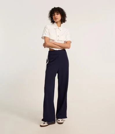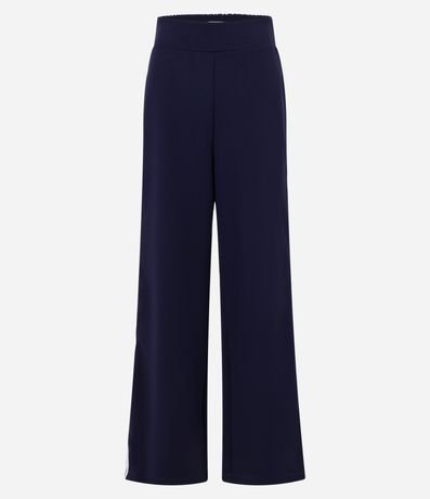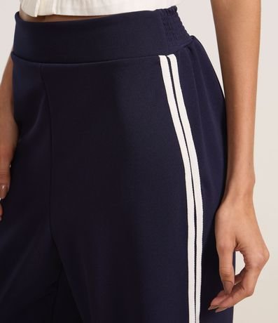 Ref: Calça feminina em alfaiataria no modelo sportcore com detalhes laterais em listras duplas.