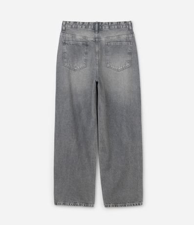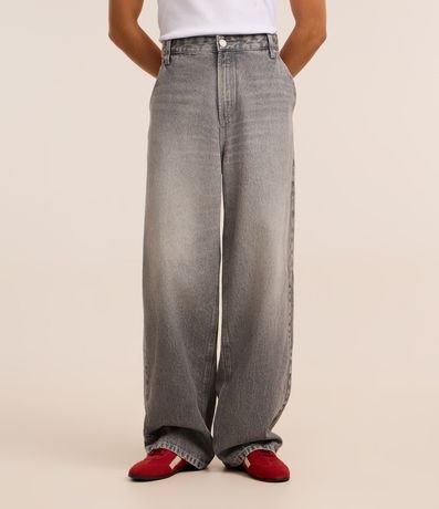 Calça super baggy, confeccionada em jeans, bolsos frente e costas e sem estampa.