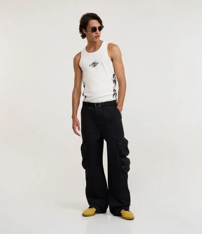 Ref: Calça masculina confeccionada em sarja mais sustentável com boas práticas ambientais, no modelo super baggy, possui cós com passante, fechamento tradicional, bolso cargo com fechamento por zíper.