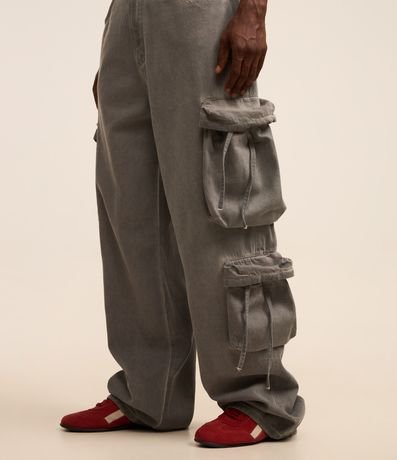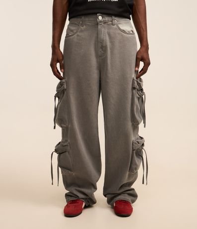 Calça Super Baggy em Sarja Estonada com Lavagem