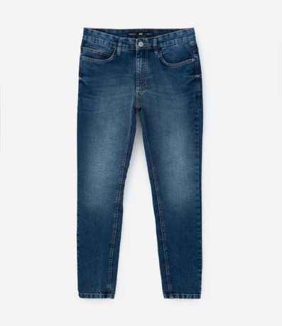 Ref: Calça masculina confeccionada em jeans mais sustentável, no modelo super skinny, cós com passantes, fechamento por botão e zíper, com bolsos.