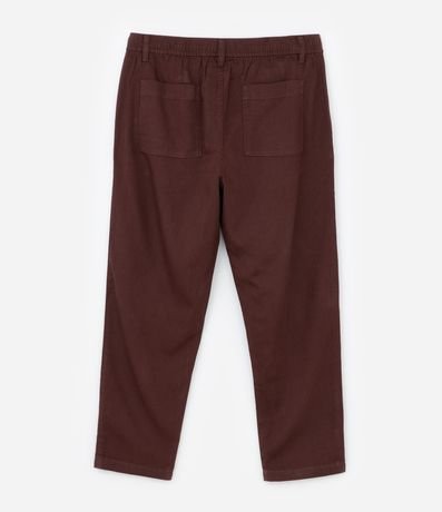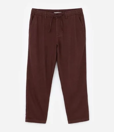 Calça masculina confeccionada em algodão com linho, com cós elástico e cordão para amarração na cintura. Possui bolsos e fechamento frontal. O item foi produzido com algodão mais sustentável e com processo mais sustentável, adotando boas práticas ambientais.