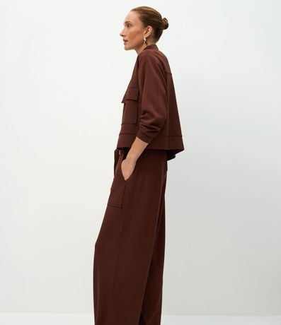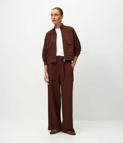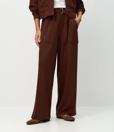Ref: Calça wide confeccionada em modal com viscose certificada, com cintura alta, cós posterior elástico e faixa com fivela para amarração. Possui bolsos frontais amplos, pernas retas e acabamento leve que favorece mobilidade em composições casuais e urbanas.