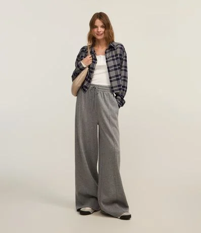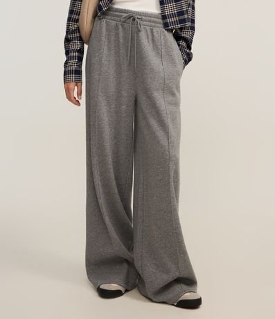Ref: Calça feminina confeccionada em moletom no modelo wide, com cós elástico, cordão para ajustes e bolsos.