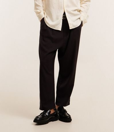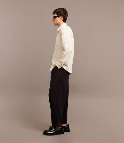 Calça masculina confeccionada em viscose mais sustentável com boas práticas ambientais, no modelo wide. Peça alfaiatada, possui cós com passante, fechamento tradicional, bolso e pregas.
