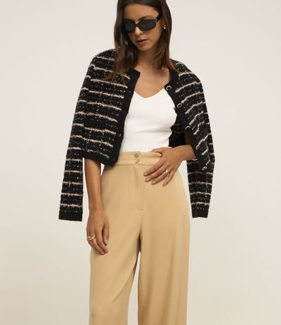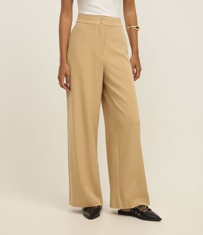 Calça Wide Leg Alfaiatada Cintura Alta com Botões Duplos
