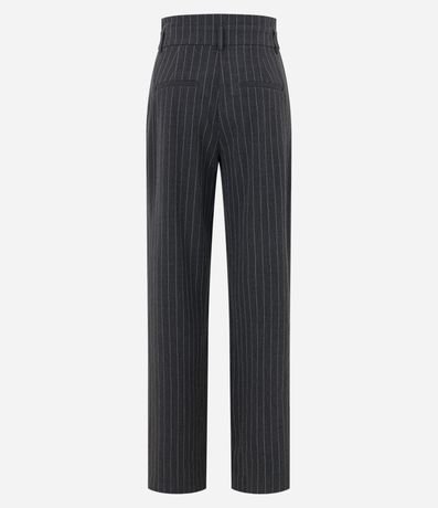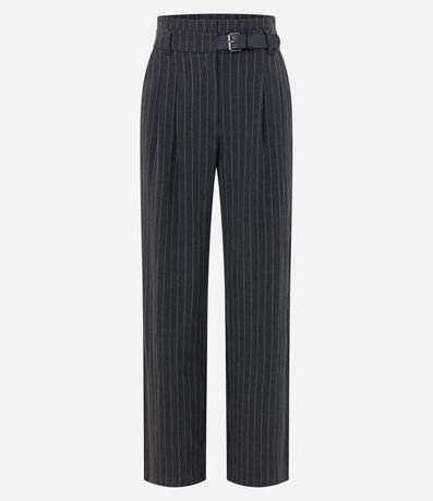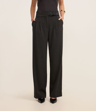 Calça Wide Leg Alfaiatada com Cintinho e Estampa Risca de Giz