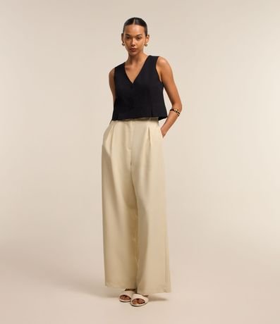 Ref: Calça wide leg com corte alfaiatado além de cintura alta com cinto de fivelas diferenciadas e pregas alogo abaixo.
