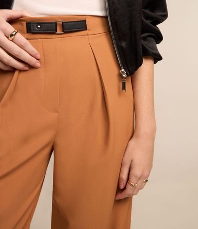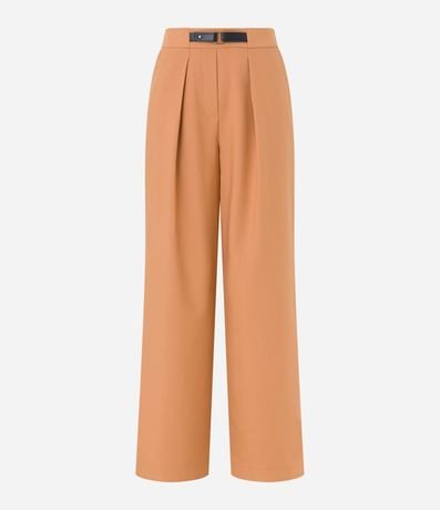 Ref: Calça wide leg feminina, com cinto fivela, pregas e zíper nas costas.
