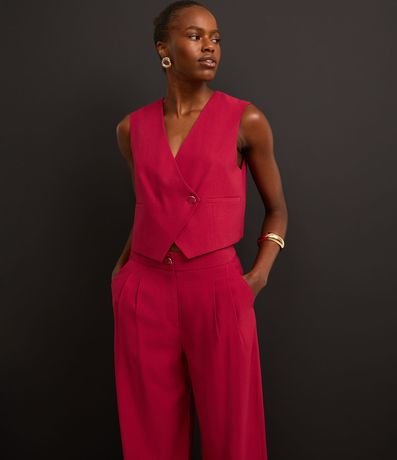Calça Wide Leg Alfaiatada em Vicose com Pregas