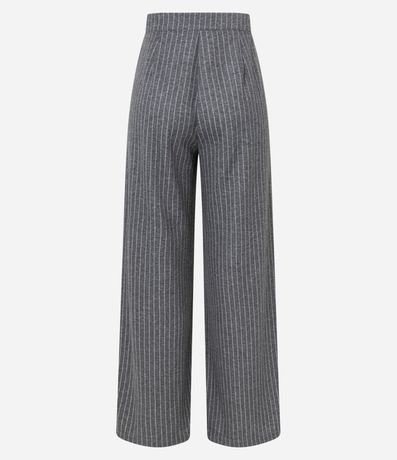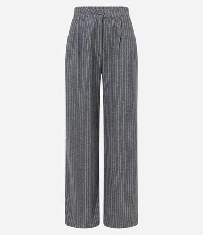 Ref: Calça feminina wide leg em alfaiataria com cós fixo, fechamento tradicional, risca de giz e pregas.