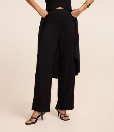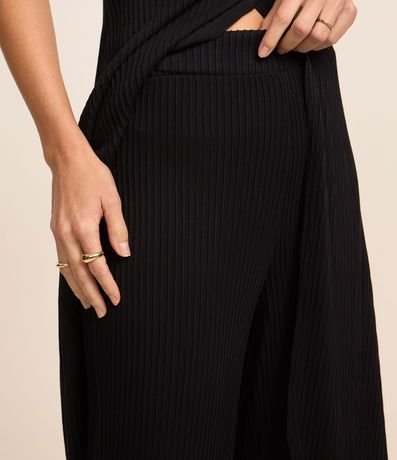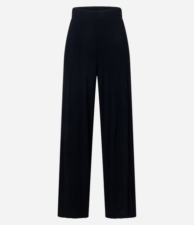 Ref: Calça feminina de modelo wide leg, confeccionada em poliéster, com textura canelada e elástico na cintura.