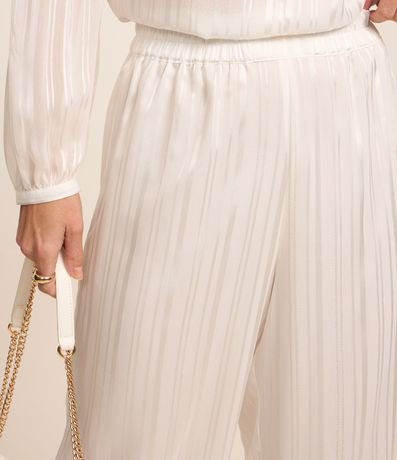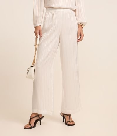 Ref: Calça wide leg com cintura alta e elástico no cós além de listras verticais com fios tintos e fios metalizados. Confeccionado em chiffon.