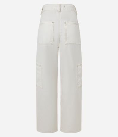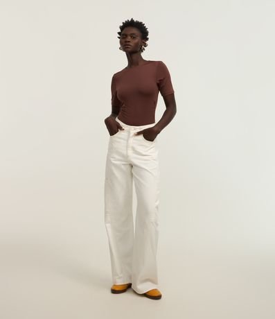 Ref: Calça wide leg de cintura alta confeccionada em jeans com passantes na cintura, fechamento tradicional por botão e zíper, bolsos frontais, bolsos traseiros e bolsos embutidos nas laterais. Possui recortes transversais.