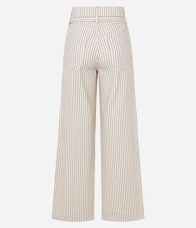 Calça WIde Leg Cintura Alta em Sarja Listrada e Cinto Estreito