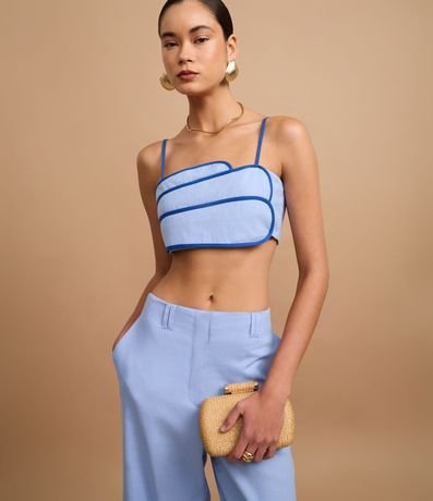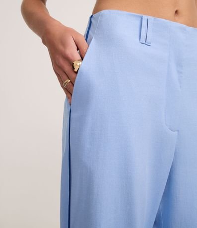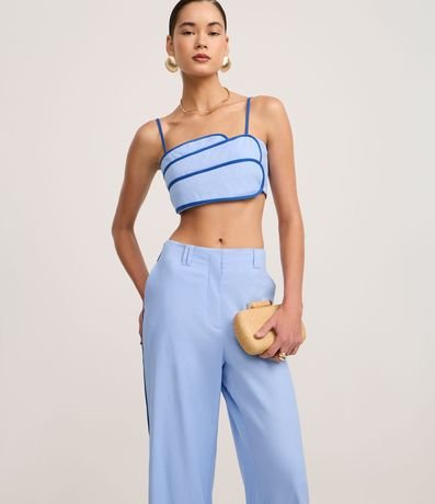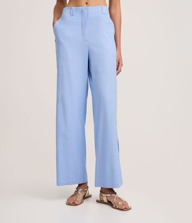 Ref: Calça wide leg de cintura alta, confeccionada em viscolinho, com passantes duplos no cós, fechamento tradicional e listras verticais contrastantes. Este produto possui viscose certificada em sua composição, sendo ambientalmente mais responsável.