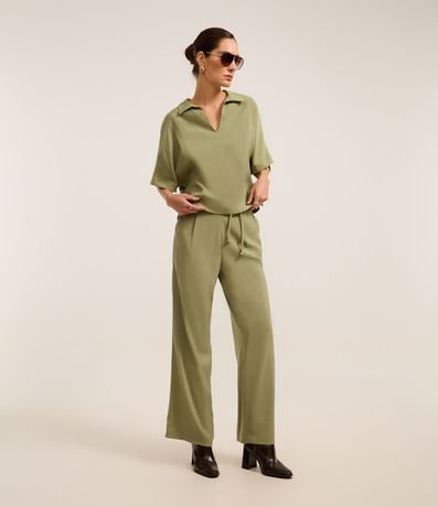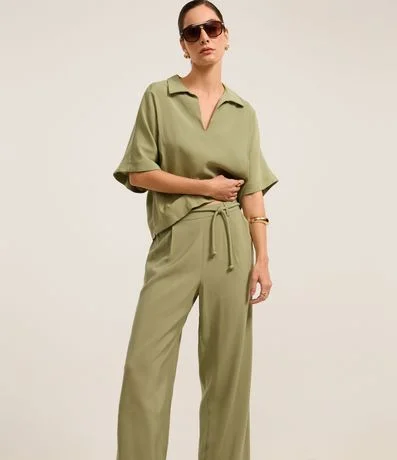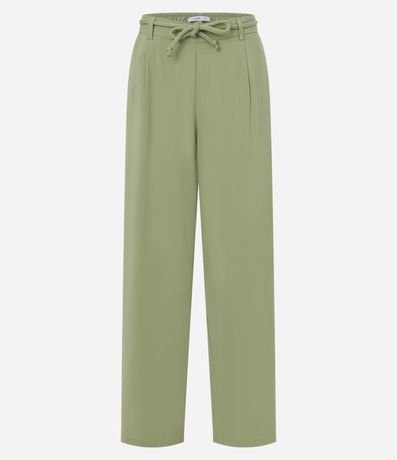 Calça wide leg de cintura alta, confeccionada em viscose, com passantes na cintura e elástico dianteiro, mas cinto amarração de corda. A peça conta com pregas frontais. Este produto possui viscose certificada em sua composição, sendo ambientalmente mais responsável.