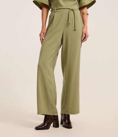 Calça Wide Leg Cintura Alta em Viscose com Cinto Corda