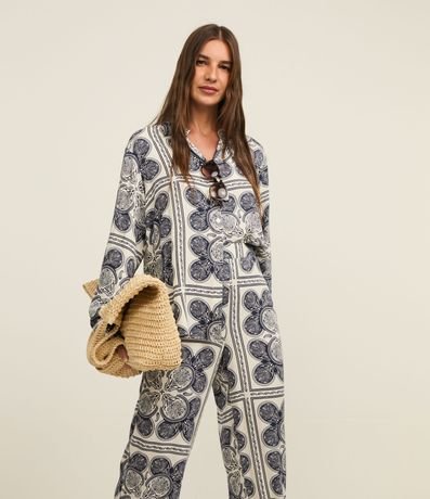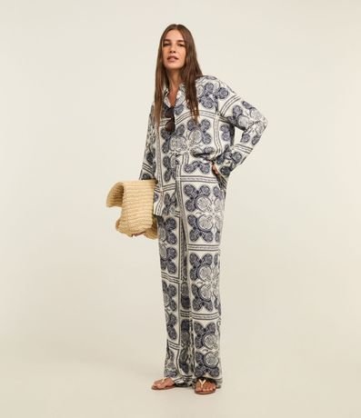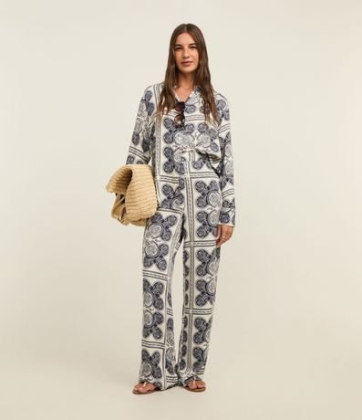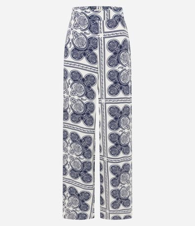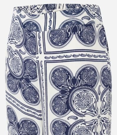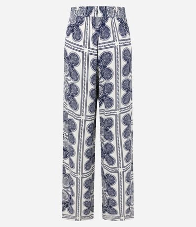 Ref: Calça wide leg de cintura alta, confeccionada em viscose mais sustentável através de boas práticas ambientais, com estamparia paisley. A estamparia pasiley conta com formas que remetem a imagens florais em quadros.
