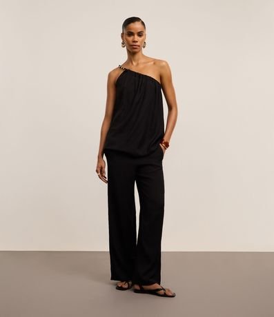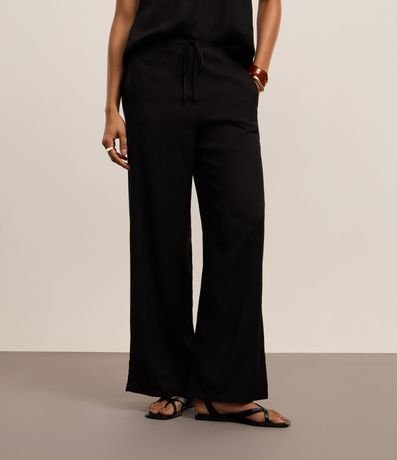 Ref: Calça feminina de modelo wide leg, confeccionada em viscose de material e precesso mais sustentáveis, com amarração no cós.