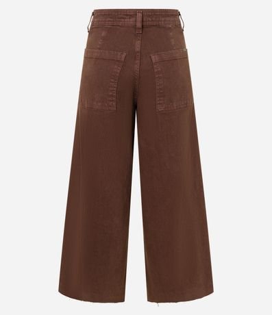 Ref: Calça wide cropped com passantes no cós, confeccionada em jeans e com bolsos traseiros. Peça com comprimento mais curto.