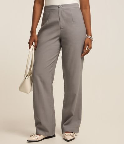 Ref: Calça wide leg em alfaiataria, fechamento por botão fosco e sem estampa.