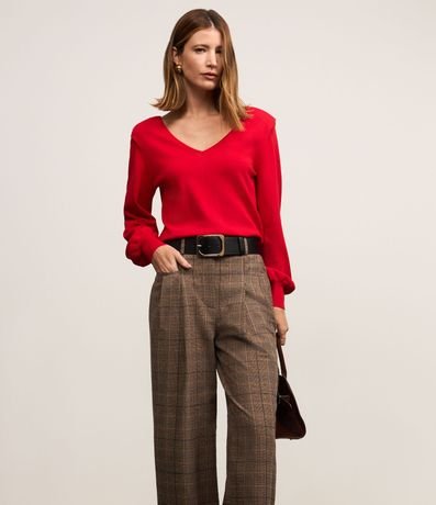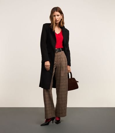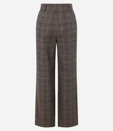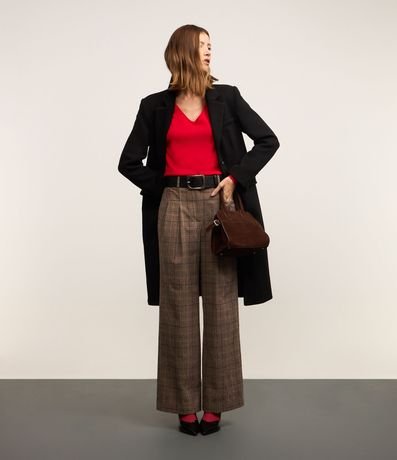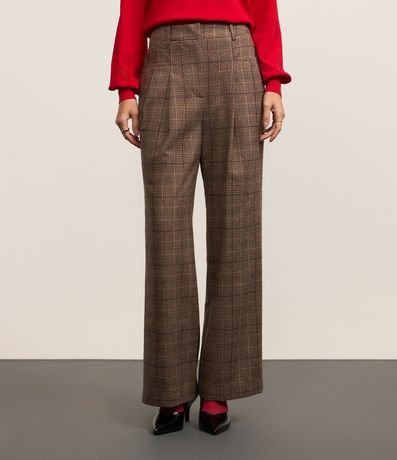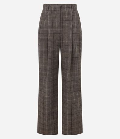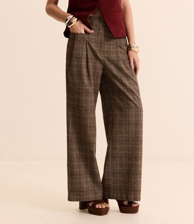Ref: Calça wide leg em alfaiataria com passantes no cós alfaiatado, pregas e com estampa xadrez.