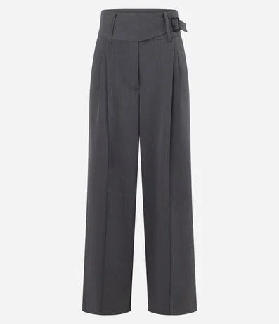 Calça Wide Leg em Alfaiataria com Cós Transpassado