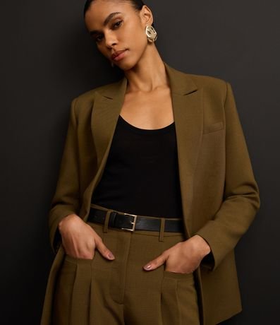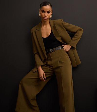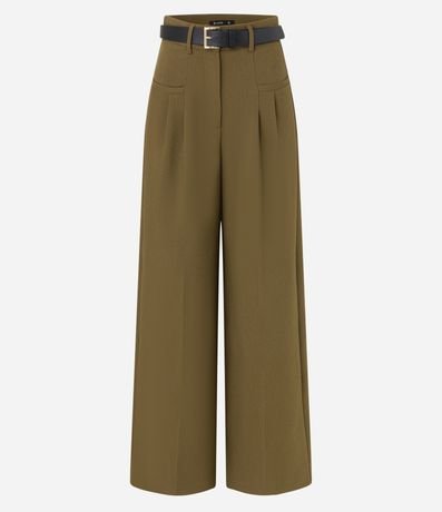 Ref: Calça feminina confeccionada em viscose mais sustentável, com corte alfaiatado e modelo wide leg. A peça possui passantes no cós, cinto em PU com fivela quadrada, bolsos frontais e detalhes de pregas, linda e atemporal!