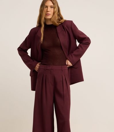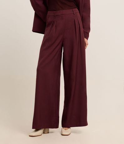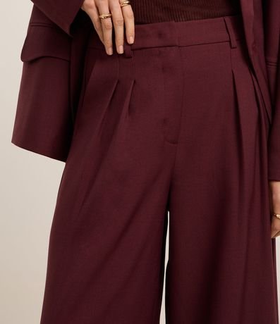 Ref: Calça wide leg com cintura alta, em alfaiataria, produzido com poliéster certificado e pregas frontais e sem estampa.