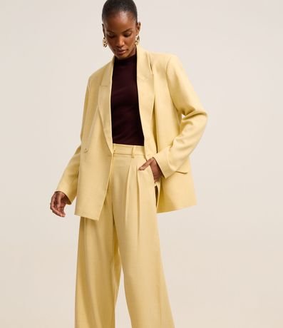 Ref: Calça wide leg com cintura alta, em alfaiataria, produzido com poliéster certificado e pregas frontais e sem estampa.