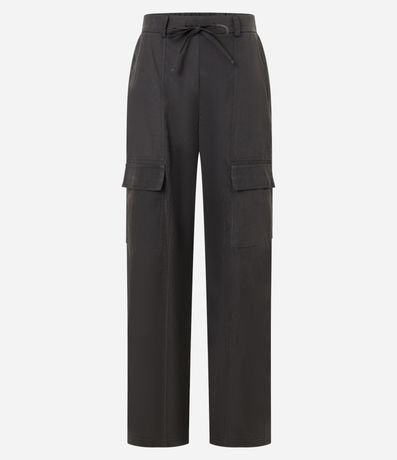 Ref: Calça wide leg confeccionada em cupro com amarração no cós e bolsos cargo nas laterais.