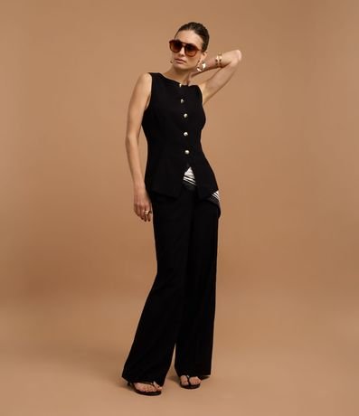 Calça pantalona, confeccionado em flame, com passantes no cós, fechamento tradicional e frisos. Este produto possui viscose certificada em sua composição, além de ter sido produzido através de processos mais sustentáveis, sendo ambientalmente mais responsável.