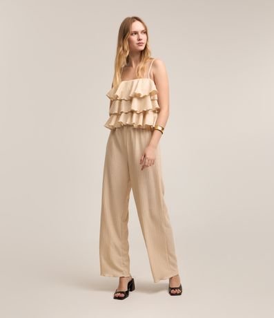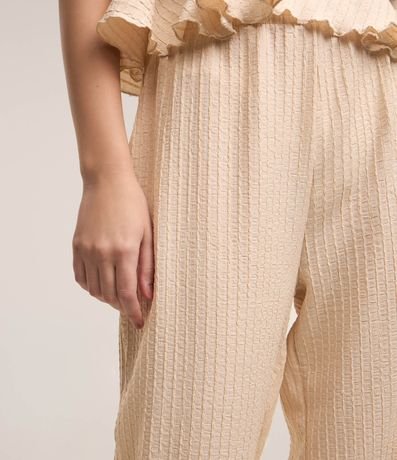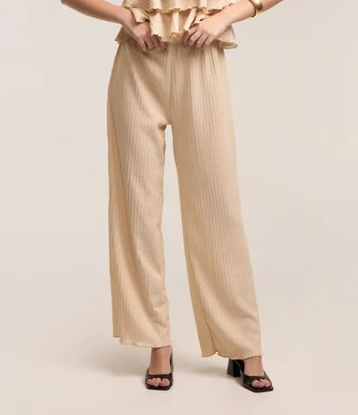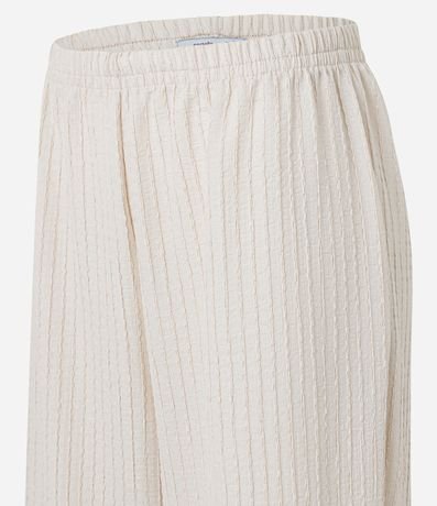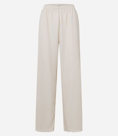 Ref: Calça feminina de modelo wide leg, confeccionada em jacqard, com elástico no cós e textura canelada.