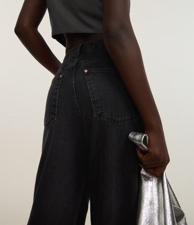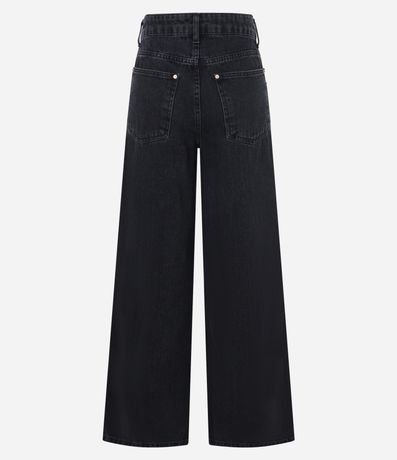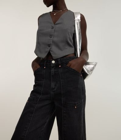 Ref: Calça feminina confeccionada em jeans mais sustentável com boas práticas ambientais. Peça no modelo wide leg com bolsos táticos, detalhe em recortes com rebites.