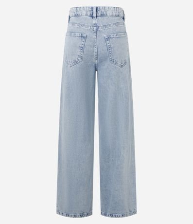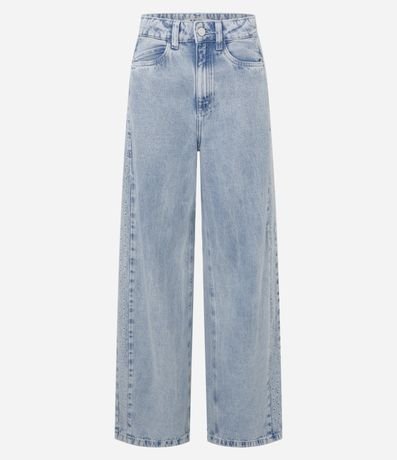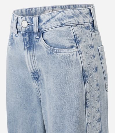 Ref: Calça wide leg confeccionada em jeans com algodão bci, passantes no cós e lindo detalhe de bordadinhos na lateral.
