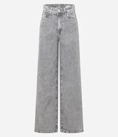 Ref: Calça wide leg cintura alta, com passantes no cós, confeccionada em jeans com algodão bci e produzida com baixo consumo de água.