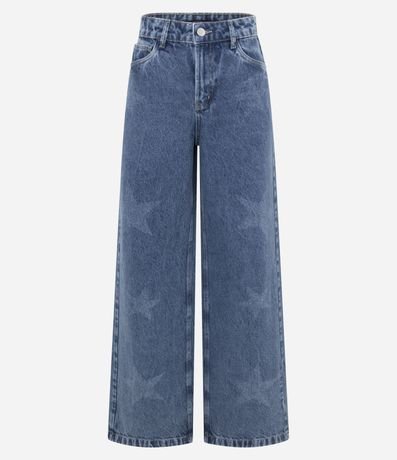 Ref: Calça confeccionada em jeans mais sustentável através de boas práticas ambientais, no modelo wide leg, garantindo conforto e sustentabilidade. Possui cintura alta e arte de estrelas aplicadas a laser, trazendo um toque moderno e exclusivo. Ideal para compor looks casuais com estilo e personalidade.