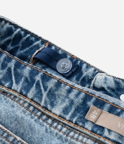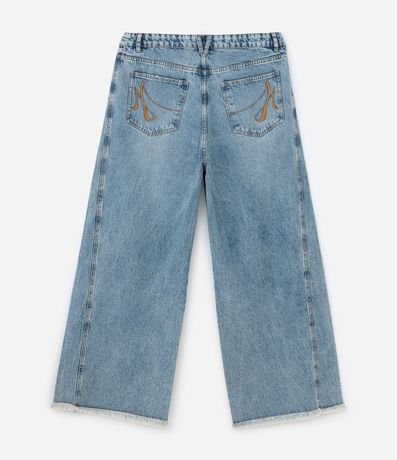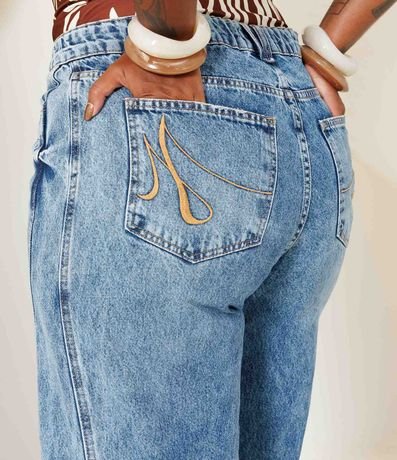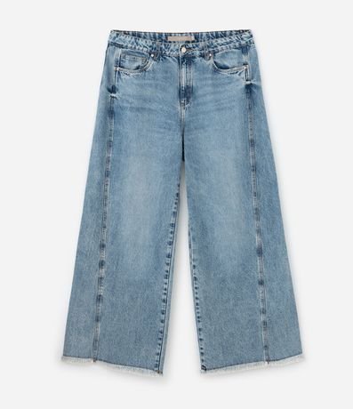 Ref: Calça jeans feminina Curve & Plus Size confeccionada em algodão mais sustentável. Possui modelagem reta, tipo wide leg, cintura média a alta, com cós tradicional e passantes para cinto. Apresenta fechamento frontal por botões e zíper, dois bolsos frontais funcionais e dois bolsos traseiros. Conta com lavagem clara, com efeito levemente estonado, bolsos traseiros com bordado decorativo contrastante, linha de costura central ao longo das pernas, que alonga visualmente a silhueta, e acabamento desfiado na barra.