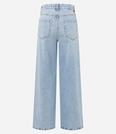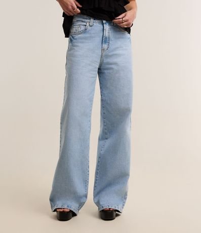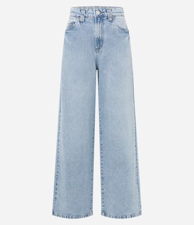 Ref: Calça wide leg com cintura alta, confeccionada em jeans com algodão bci e produzida com baixo consumo água. Possui efeito marmorizado e bolsos frente e costas.
