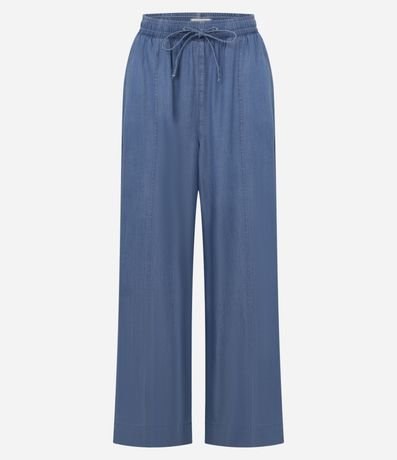 Calça Wide Leg em Liocel com Nervura