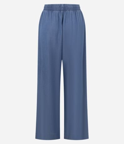 Calça feminina wide leg confeccionada em liocel, com cós elástico na cintura e detalhe de nervura frontal que adiciona sofisticação ao visual. Peça leve e confortável. Processo mais sustentável com material certificado.