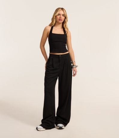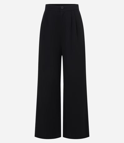 Ref: Calça wide leg confeccionada em moletom, com pregas frontais e botão no cós.