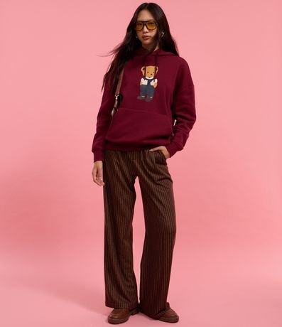 Ref: Calça wide leg confeccionada moletom com preguinhas e listras em risca de giz.