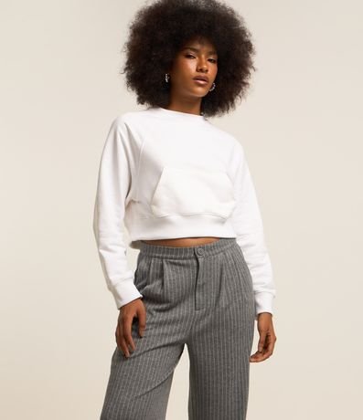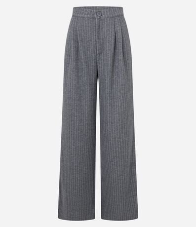 Ref: Calça wide leg confeccionada moletom com preguinhas e listras em risca de giz.
